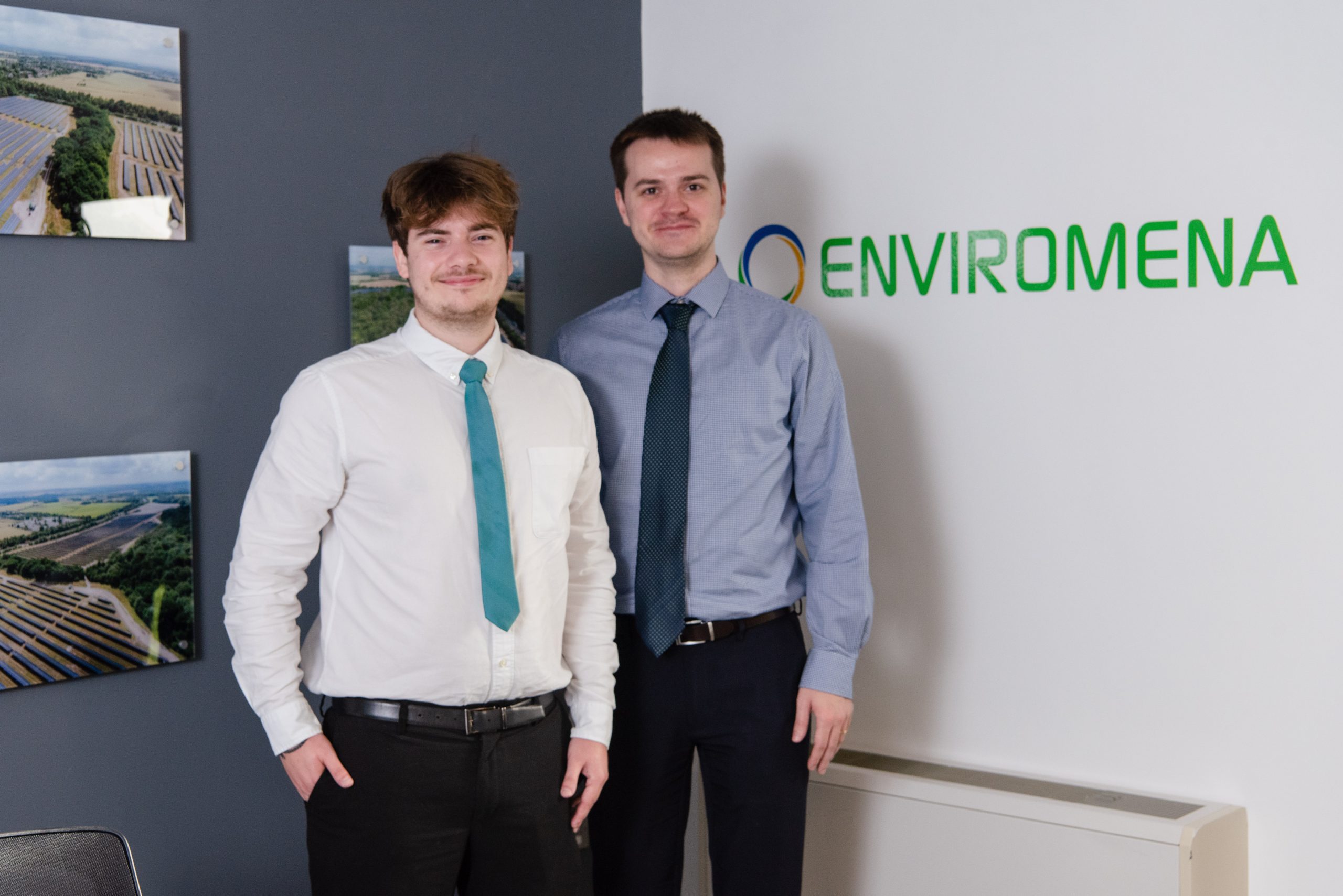 Electrical Engineer Chester Creedy and Performance Analyst Max Castle join Enviromena at the company’s Grazeley HQ near Reading.